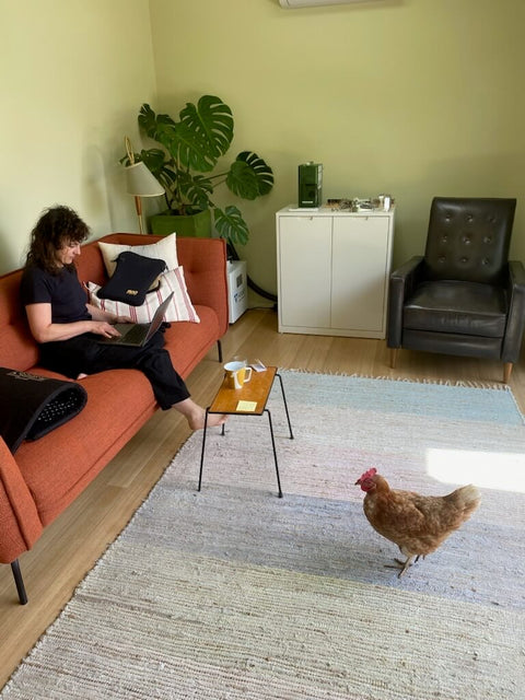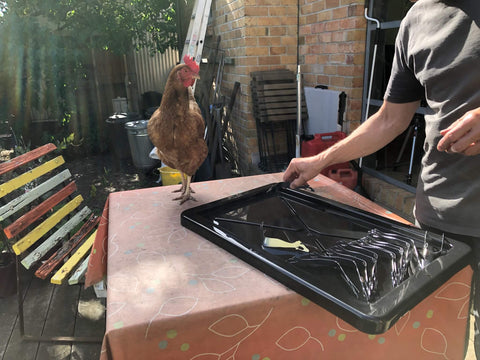 We are grateful for Marjorie, Mrs Maisel, Dolores and Selma who don’t always pull their weight but do offer excellent, if irrelevant advice. They are the four chickens in the yard (and occasionally in the workshop) and have been essential and beloved participants in this whole operation.