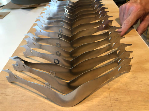 Back in the workshop each piece has to be carefully checked. We remove burrs and scratches using a combination of mechanical and hand sanding methods.